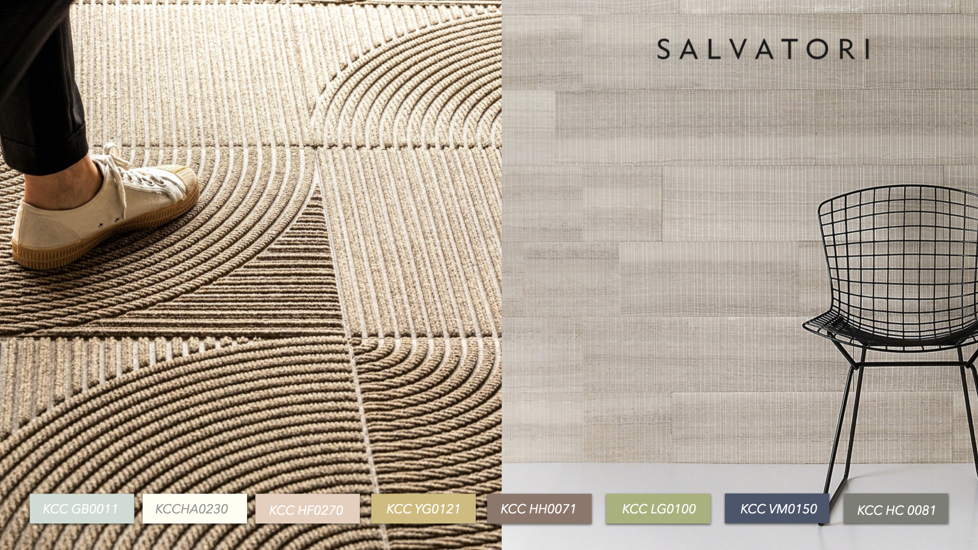 Musett Design은 아바카 섬유를 활용 해 이러한 패턴감을 표현 해 내었고, 타일 브랜드 살바토리는 잘라낸 나무의 결을 표현한