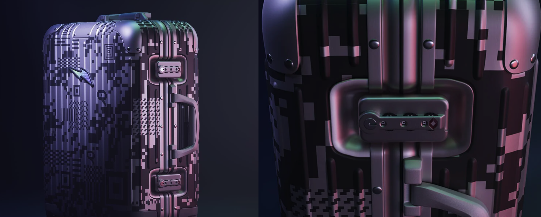 여행 가방 브랜드 Rimowa(리모와)는 나이키 RTFKT(아티팩트 스튜디오, 나이키가 인수한 NFT 제작사)와 협업해 디지털 패턴이 적용된 아노다이징 알루미늄 여행 가방을 출시했다. NFT 속 가상 제품과 실제 실물 디자인이 함께 출시되는 이 가방은 888피스만 생산되는 한정판 캐리어로, 가볍고 튼튼하면서도 고급스러움을 자아내는 디자인으로 주목받는다.