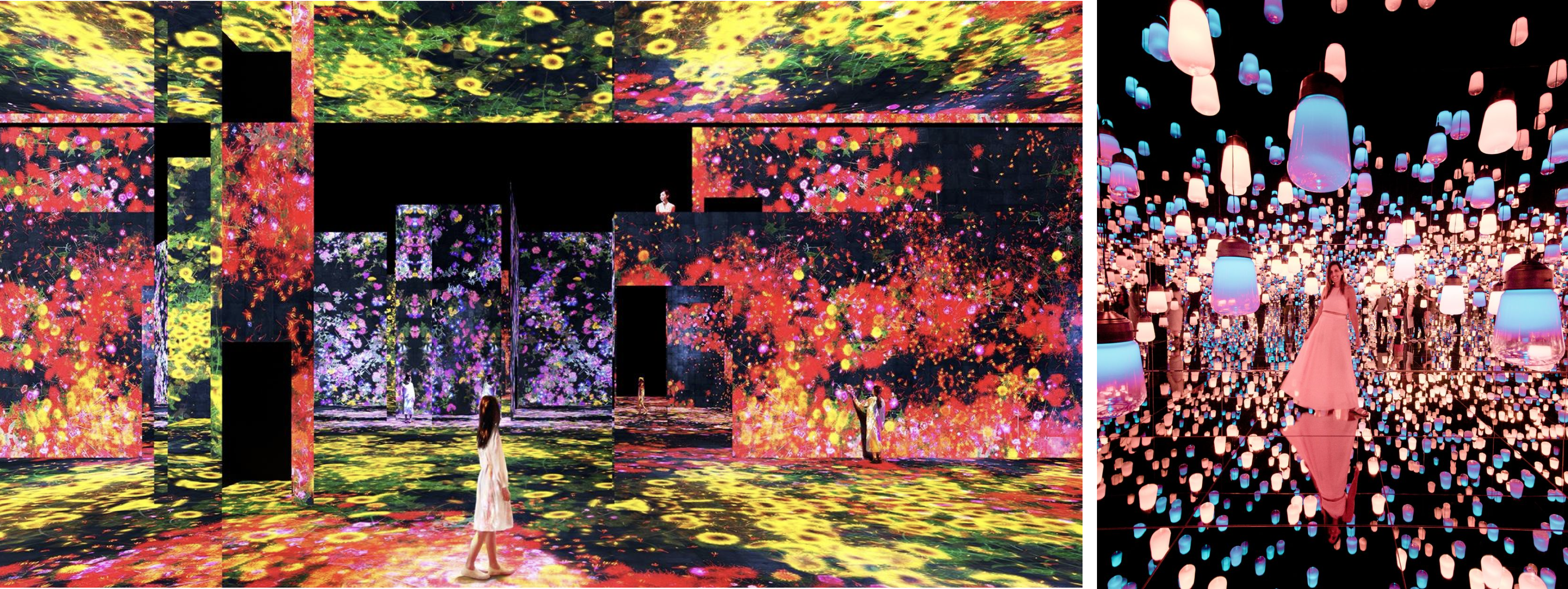 팀랩은 세계 곳곳에서, 디지털 속 다채로운 자연 경험을 할 수 있는 몰입형 공간을 제공한다. 작년 새롭게 선보인 팀랩 플래닛 도쿄에서는 관람객들이 신발을 벗고 입장해 바닥의 질감을 느끼는 동안, 이들을 둘러싸는 디지털 그래픽이 관람객의 상호 작용에 따라 다르게 변화하는 공감각적인 경험을 제공했다.