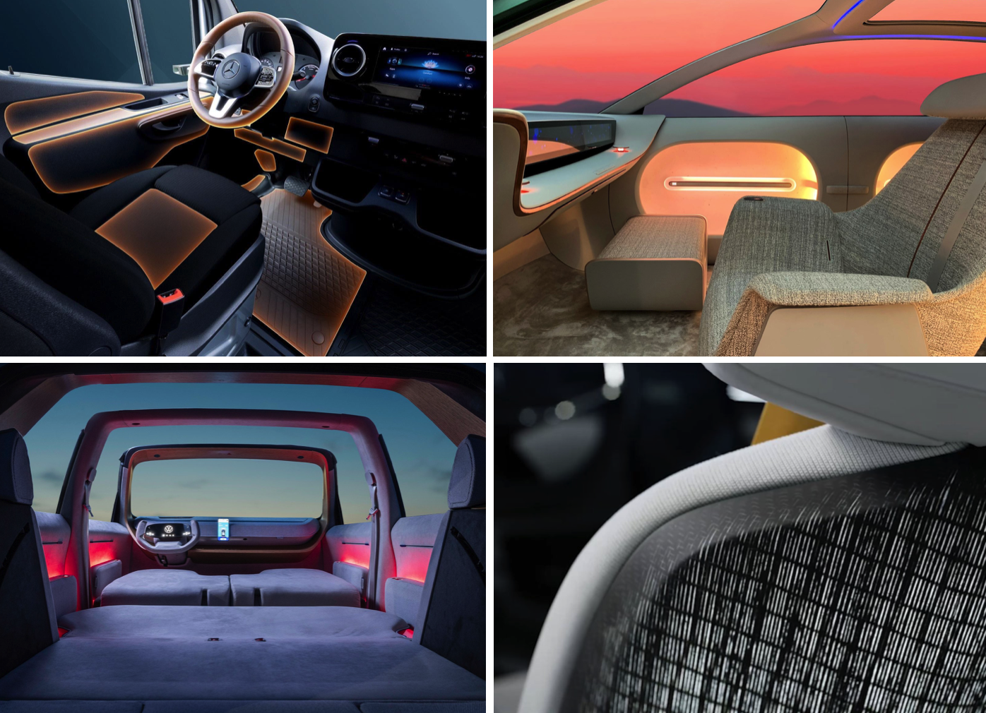 지속적으로 힐링테리어에 대한 이슈들이 언급되어 오면서 지난해 밀라노디자인위크와 런던디자인위크에서도 다양한 힐링테리어 공간과 제품들이 보여졌다. 그리고 이제 집을 비롯해 자동차도 여가와 휴식의 공간으로 바뀌고 있다. 도로 위에서 오랜 시간을 보내는 운전자들의 건강을 생각해서 제작된 벤츠 서스테인 차량, 일광 조명 인테리어와 리빙룸을 연상하게 하는 현대차 콘셉트카 세븐은 차량 내 힐링테리어를 다각도로 보여준다. 폭스바겐의 ID.Life는 재활용 소재 부직포가 시트와 도어트림에 사용되어 따뜻한 분위기의 인테리어를 보여주고, 폴스타는 재활용된 어망, 부직포 등 윤리적 소재를 활용한 인테리어를 보여주며 가치 있으면서도 긍정적인 촉감을 자극하는 디자인을 보여준다. 이처럼 차량 내부 소재와 디자인도 지속적으로 힐링테리어의 방향성을 보이고 있다.