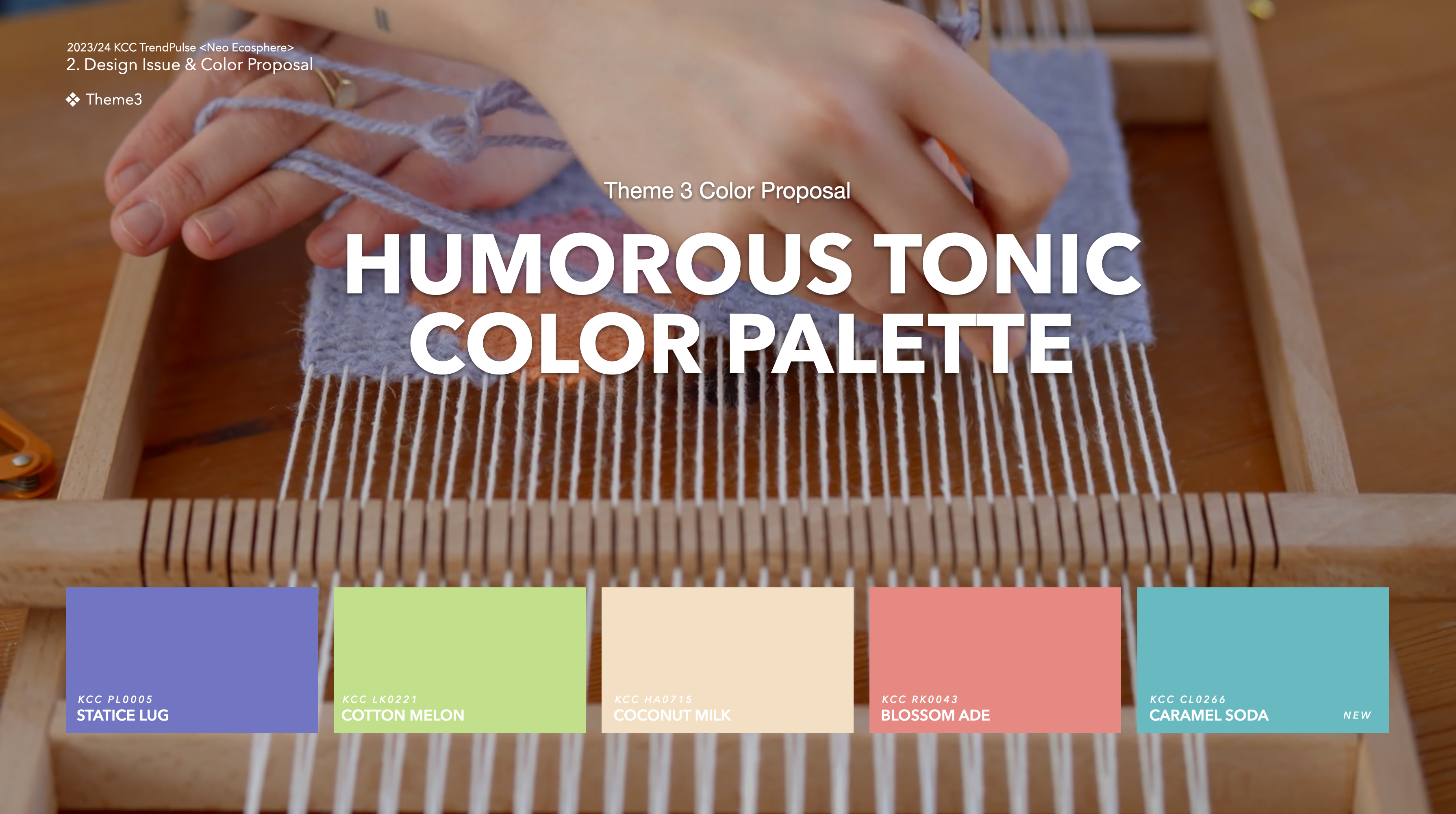 KCC 컬러 & 디자인센터는 매년 소비자 라이프스타일 및 디자인 트렌드 분석을 통해, 3가지 CMF & 인테리어 트렌드 테마와 컬러를 제안하고 있다. 이번 포스트는 KCC에서 제안하는 CMF 트렌드 그 세 번째 내용과 관련한 디자인 이슈와 컬러 제안의 내용으로 구성된다. 이제부터 각 항목별 내용들을 하나씩 살펴보자.