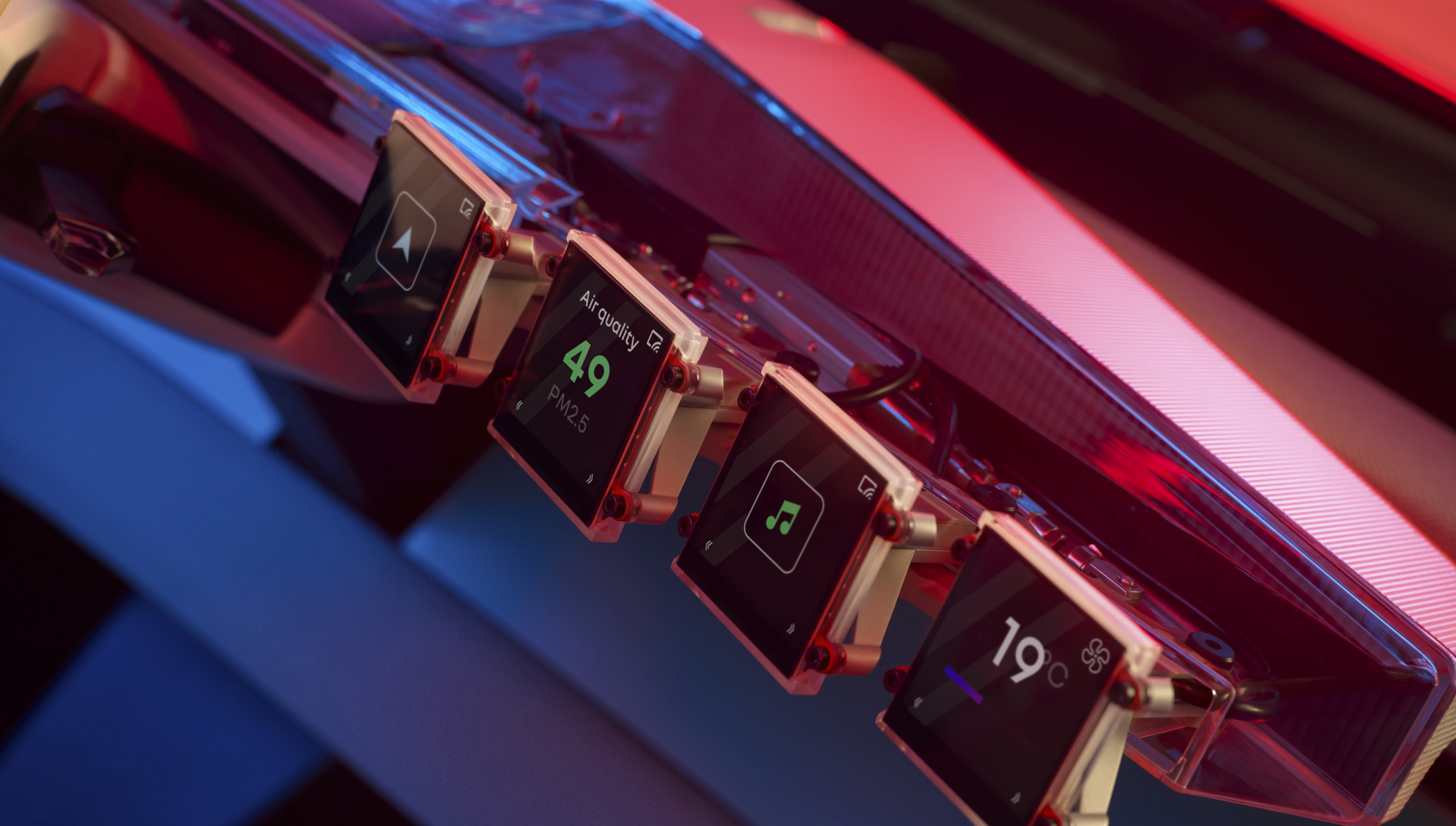 이러한 맥락에서 글로벌 자동차 기업들은 디지털 패턴과 컬러가 적용된 디자인들을 선보인다. Bentley는 EWB 2023 인테리어에 가죽과 LED 패널이 결합된 다이아몬드 일루미네이션(Diamond Illumination) 디자인을 선보였고 Maserati, Audi 등 자동차 내장재 디자인에서도 이러한 디지털 패턴들이 다각적으로 보여지고 있다.