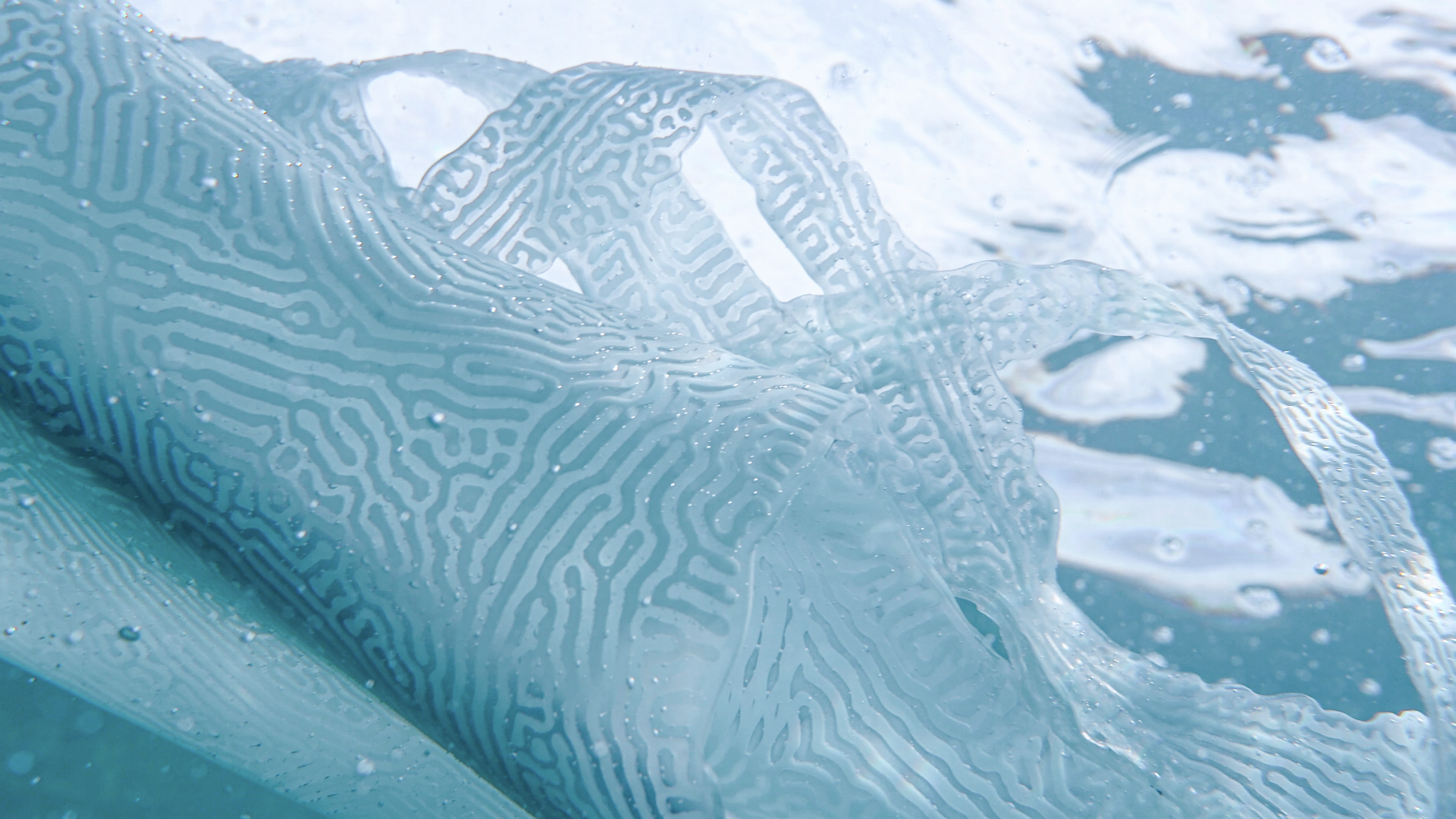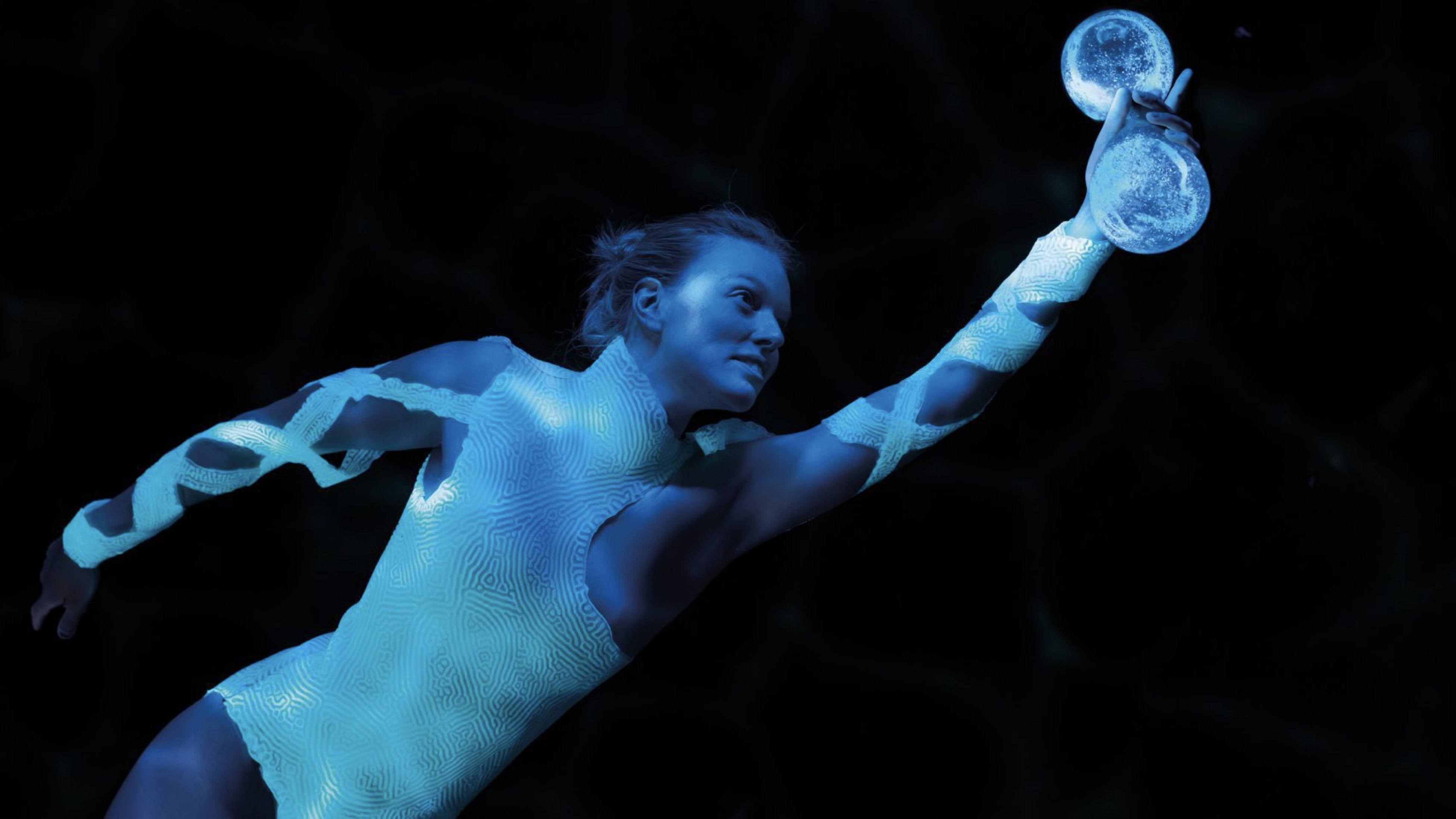 퍼시픽섬의 생물발광 조류로 만들어진 신소재 Bellamy. 접촉이나 움직임에 반응하여 빛을 내는 살아있는 조류가 포함된 재료로 만들어졌으며, 이를 사용하거나 착용하는 사람이 자연 세계와 더욱 연결되는 느낌을 갖게 하는 효과가 있다. 또한 어둠 속에서 빛을내는 모습은 친환경적이면서도 퓨처리스틱한 무드를 전달한다.