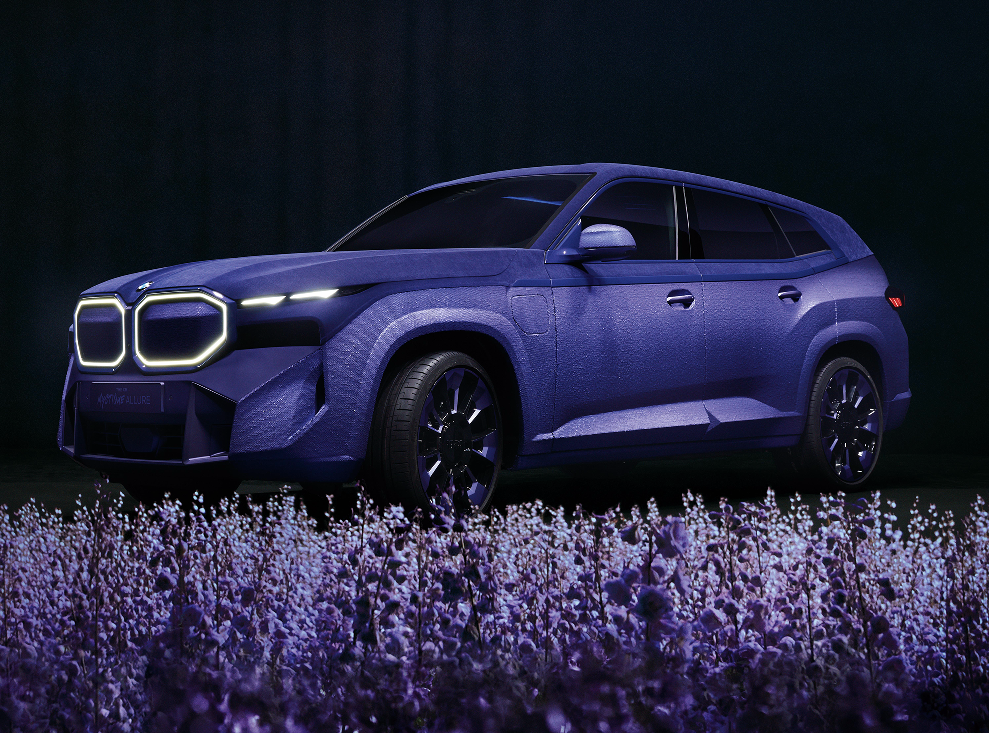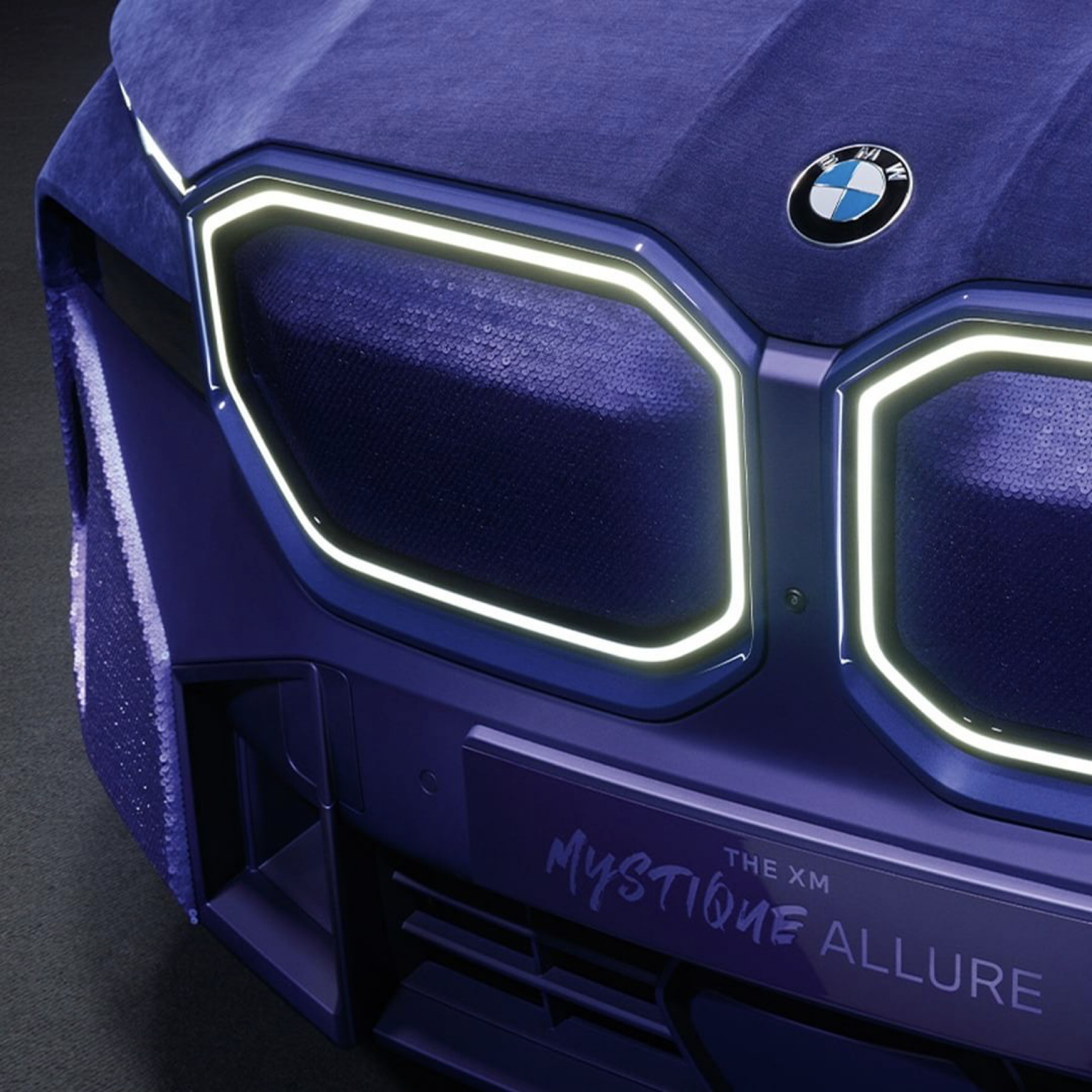 영국 슈퍼모델 나오미 캠벨과 협업해 제작된 BMW XM Mystique Allure은 차체와 실내에 무광 벨벳 소재와 메탈릭 스팽글을 사용해 같은 컬러 안에서 다른 텍스쳐감을 보여주었다.