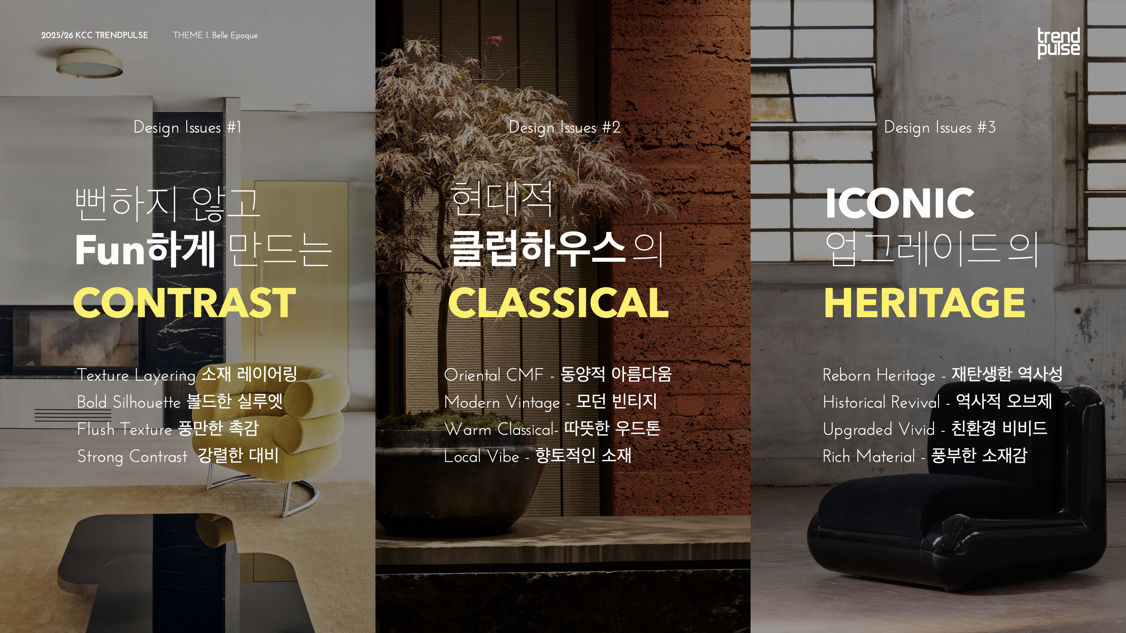 | [25/26 KCC TrendPulse] 인테리어 트렌드 테마 2 - INTRO (0) | 2025.04.01 |