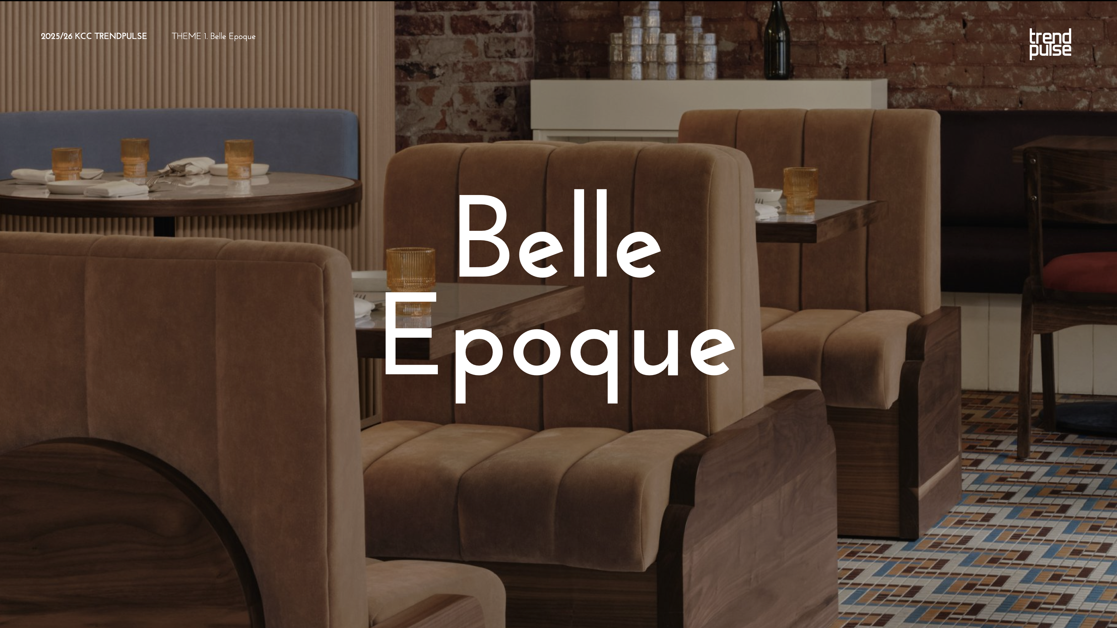 2025/26 KCC TrendPulse 인테리어 트렌드 파트에서는 개인성과 자율성이 중시되는 사회 속 다양한 유동적 변화들이 공존하는 모습에 대한 이야기로, 총 3가지의 테마를 제안한다. 그 중 이번 포스트에서는 3가지 테마 중 첫 번째 테마, 우리의 마음 깊숙한곳에 자리잡은 노스텔지어를 담은 Belle Epoque 를 소개한다.