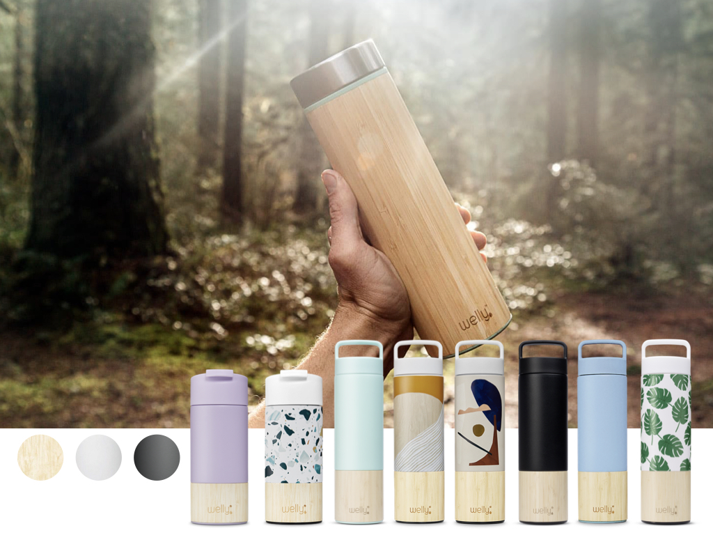 천연 대나무(Bamboo) 소재를 적용하여 수분을 유지해줌과 동시에 갓 내린 찻물의 맛을 유지시켜주는 탈착식 인퓨저인 웰리(Welly)의 보틀은 음료뿐 아니라 한 입 크기의 과채류를 담을 수 있는 사이즈 (18/8oz)까지 구성되었다.