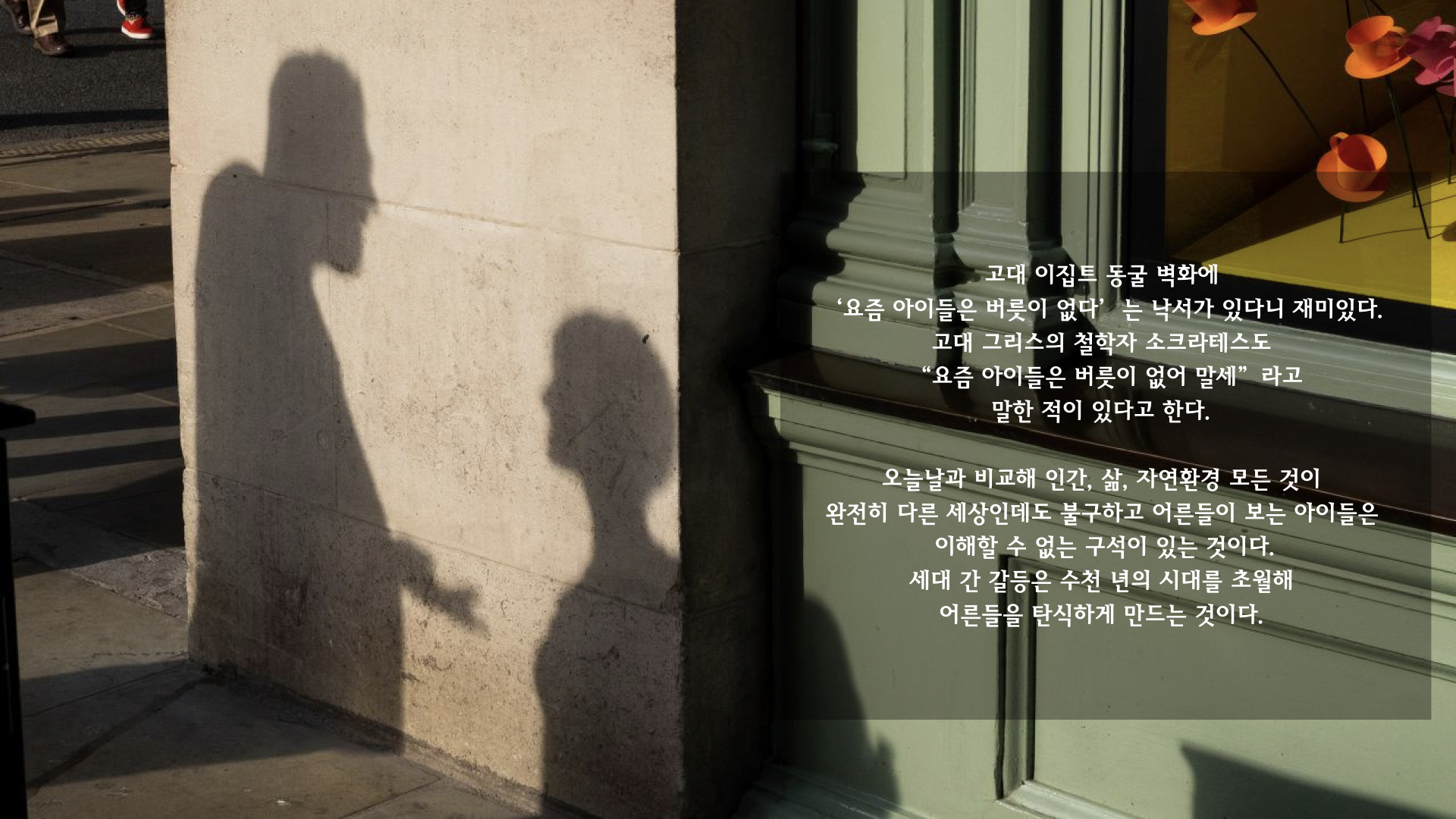 과거에도 당시의 젊은 세대에 대한 불만과 그들을 탓하는 문구는 접할 수 있었지만,