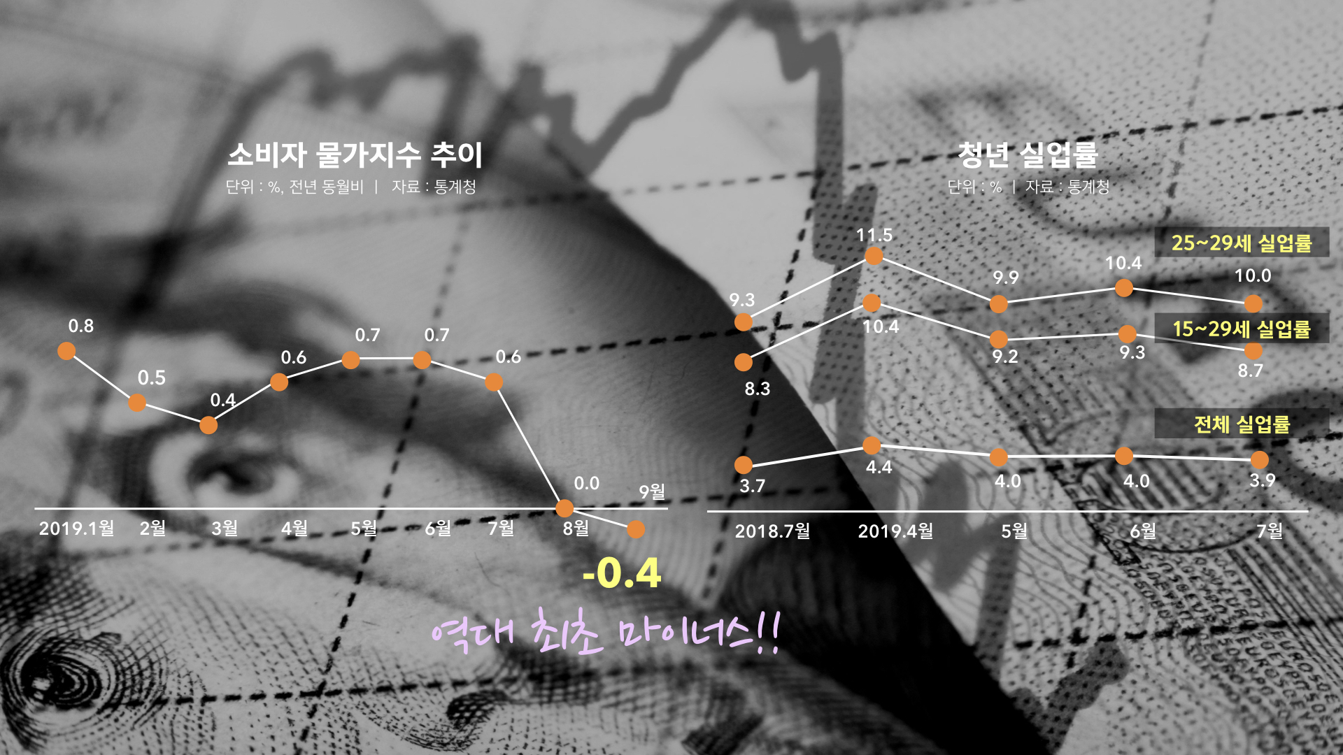 1% 에 못 미치는 물가 지수와 상반되게 높은 수준을 유지하고 있는 실업률,