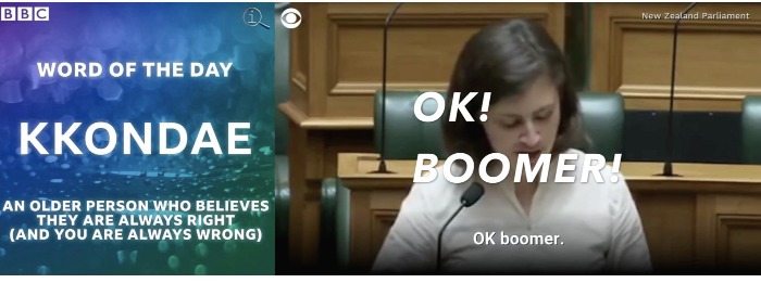 베이비 부머를 비롯한 어른 세대를 냉소적으로 부르는 ‘OK BOOMER’가 뉴질랜드 의회 안에 울려 퍼지며