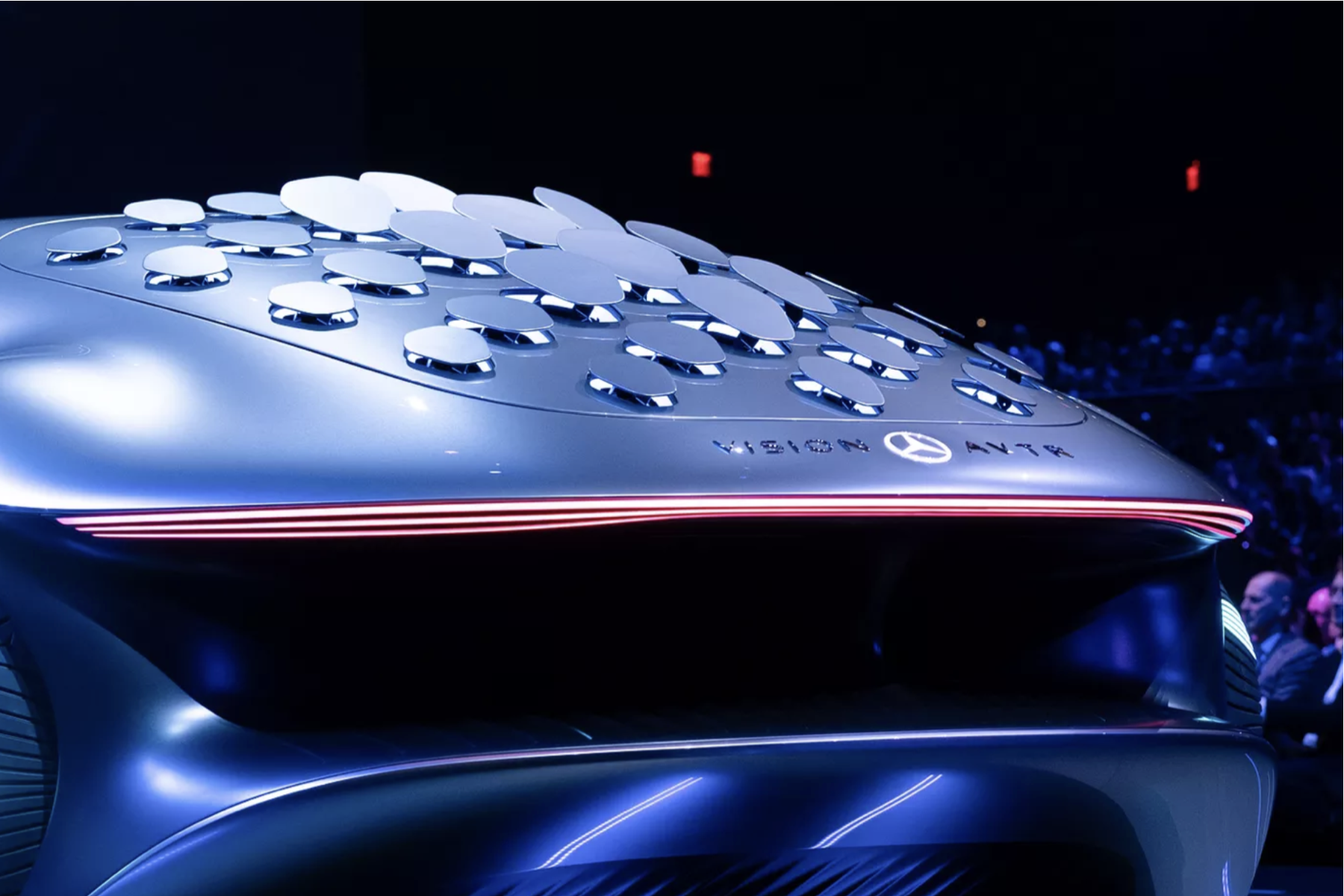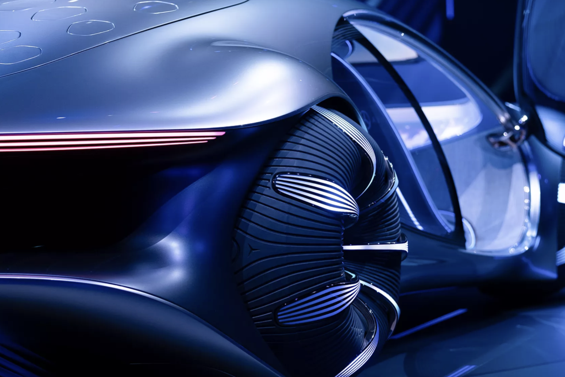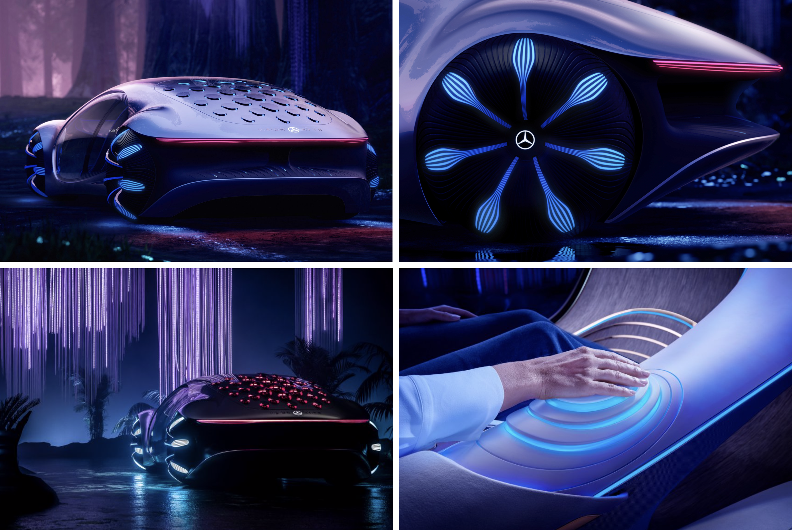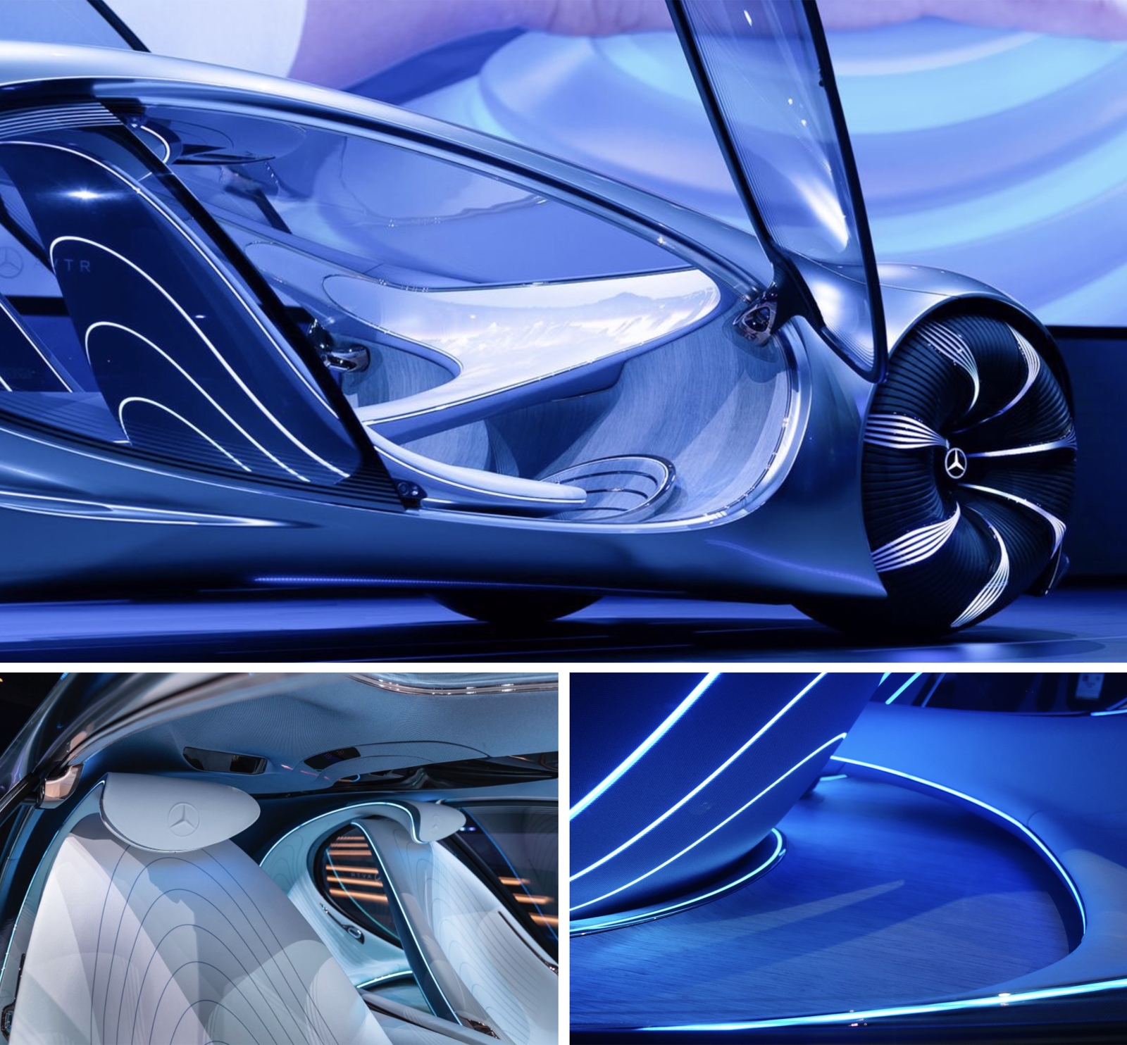 Benz의 AVTR은 슬릭(sleek)한 입자감의 고휘도 메탈릭 실버로, 현존하는 메탈릭 실버 컬러 중 가장 매끈하고, 휘도감이 좋게 표현된 것으로 보인다. 고휘도 메탈릭 실버는 하이라이트와 쉐이드의 대비를 강하게 주면서도, 중간톤을 풍부하게 함으로서 유기적인 차체의 형태를 극대화 시켜주었다. 유기적 생명체에서 모티브를 받아 디자인된 차 답게, 주변의 빛과 환경을 반영하여 차체를 드러내는 방식으로 컨셉을 표현하는 놀라운 통찰력을 보여준다.