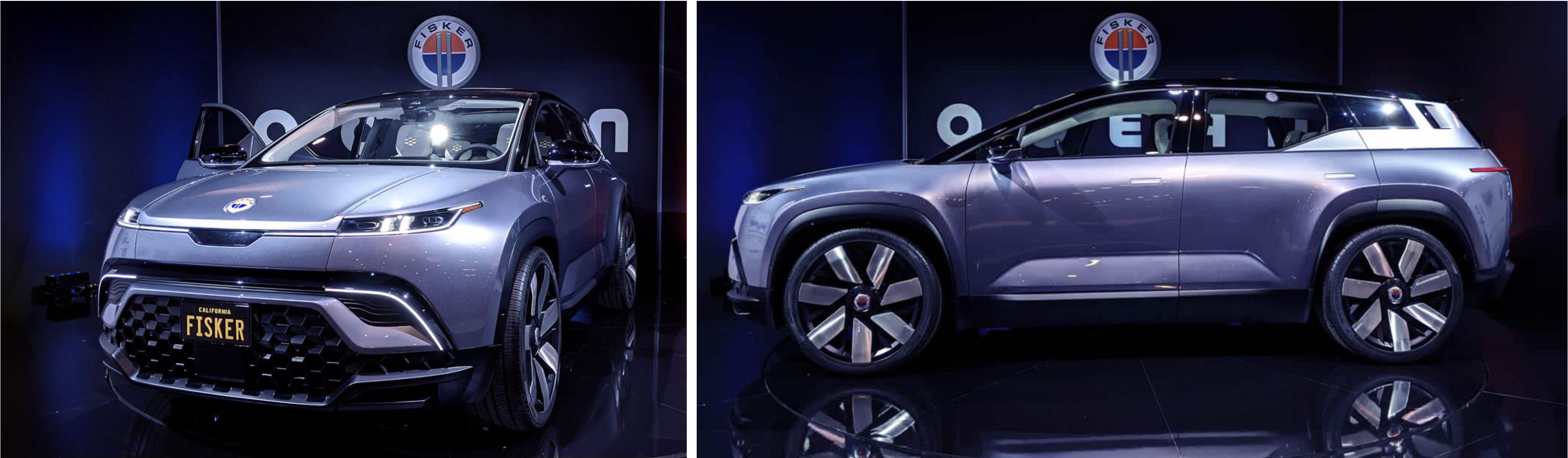 피스커의 오션의 바디 컬러는 블루 바이올렛이 틴티트된 메탈릭 실버에 글라스플레이크의 입자감을 강조하여 표현되었다. 피스커 오션은 태양 전지판 지붕, 해양 폐기물 소재의 인테리어 등 세계에서 가장 지속가능한 양산 차량으로 홍보 중인 가운데, 라이프사이클 순환을 추구하는 마감재들이 입자감을 그대로 살려 재생되는 것과 같은 맥락에서, 외장을 크고 스파클한 입자감을 갖도록 디자인한 것으로 해석된다.