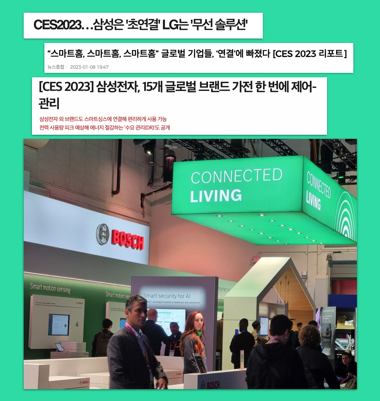 환경을 생각하며 소비를 줄일 수 있는 '에너지 모니터링 기술'은 우리 일상 속에서 중요한 요소가 되었다. AI 기술이 발달하면서 가전은 집 전체를 컨트롤할 수 있게 되었고, 이러한 멀티테스킹 역할 수행에 도움을 주는 홈 커넥트 앱들이 다양한 버전으로 출시되고 있다. 특히나 올해 CES 2023의 표제어는 'Be in IT'로 가전의 초연결 기술이 화두에 오르는 등 가전을 중심으로 공간을 연결하는 기술들이 출시되고 있다.
