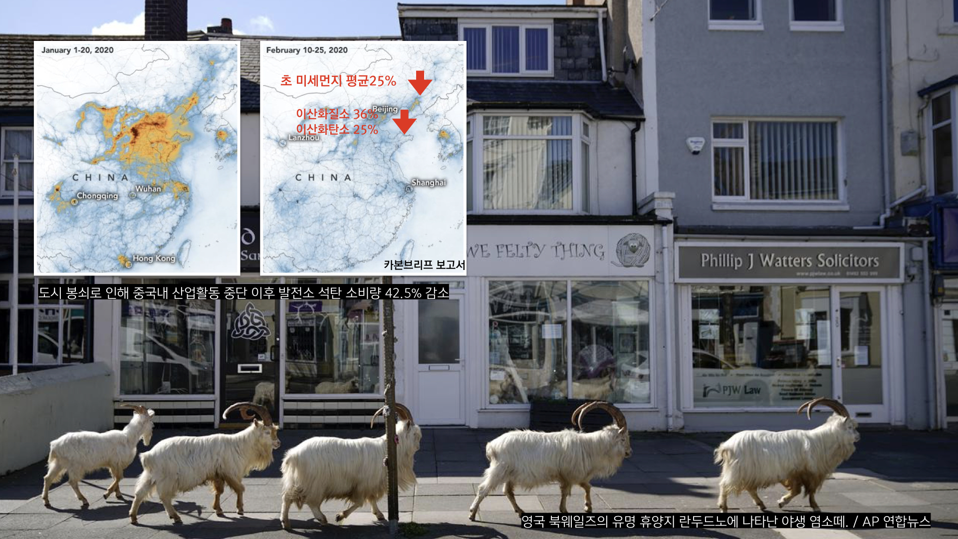 아이러니하게 사람들의 활동이 줄어들자 오염되었던 하늘은 맑아지고, 우리 곁을 떠났던 동물들이 돌아오며