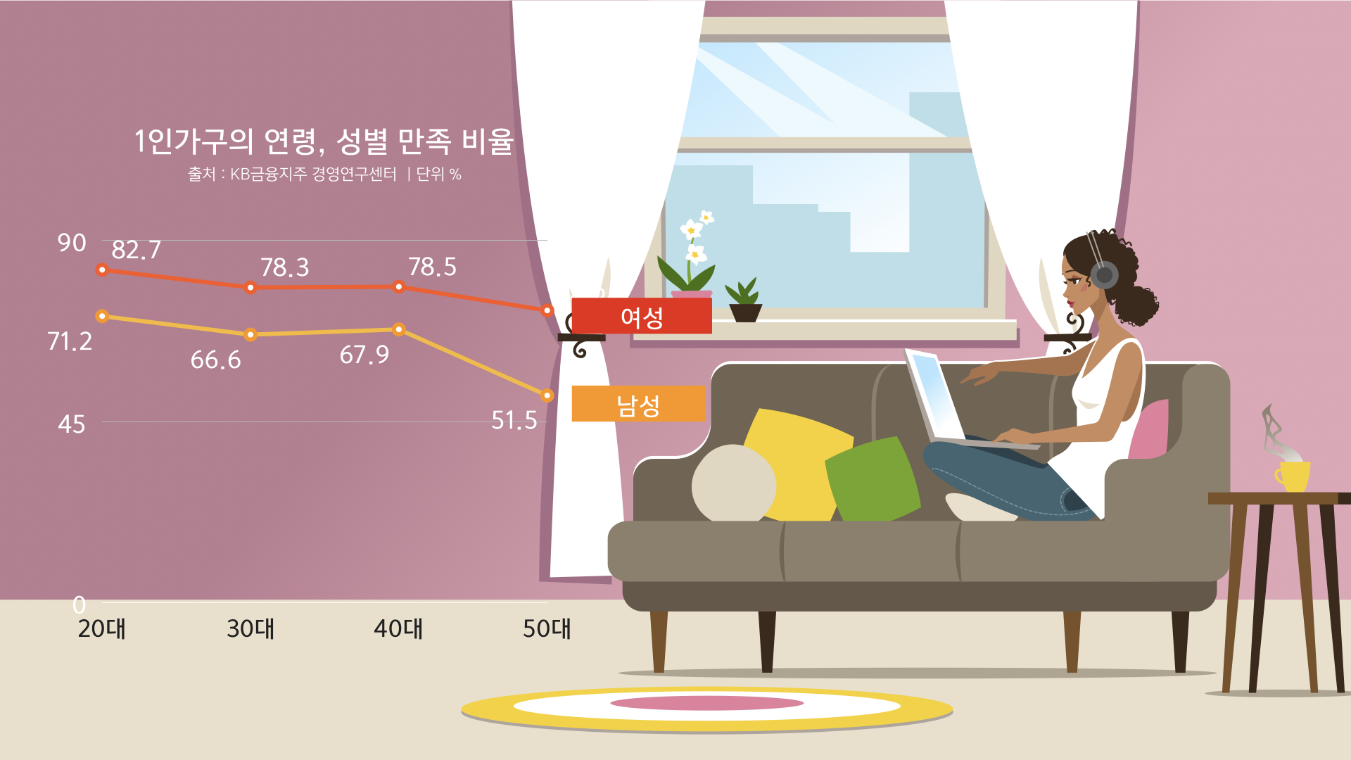 혼자 사는사람들이 삶의 만족도를 높여 주었다.