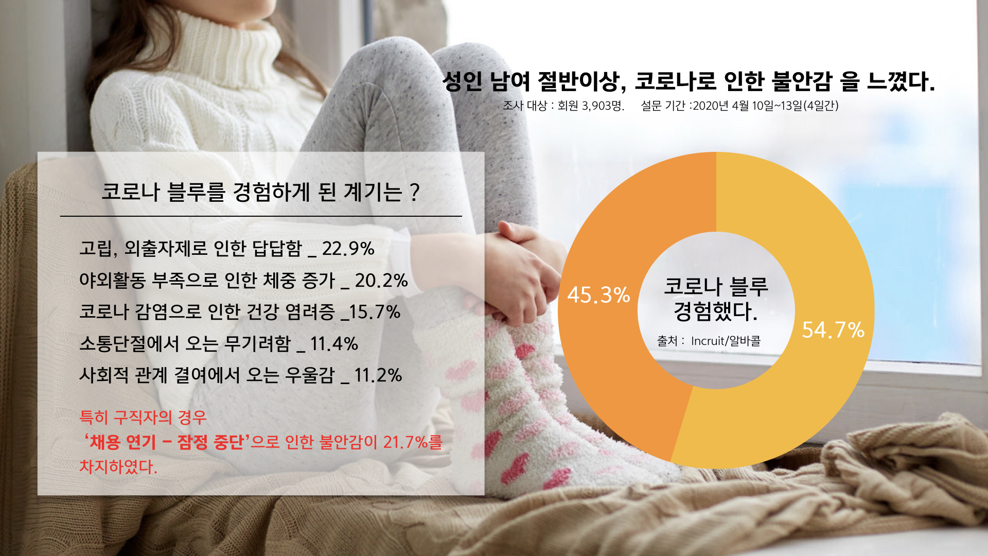 갑작스럽게 일상을 잃은 사람들은 ‘코로나 블루’로 인한 우울감을 호소하고 있다.
