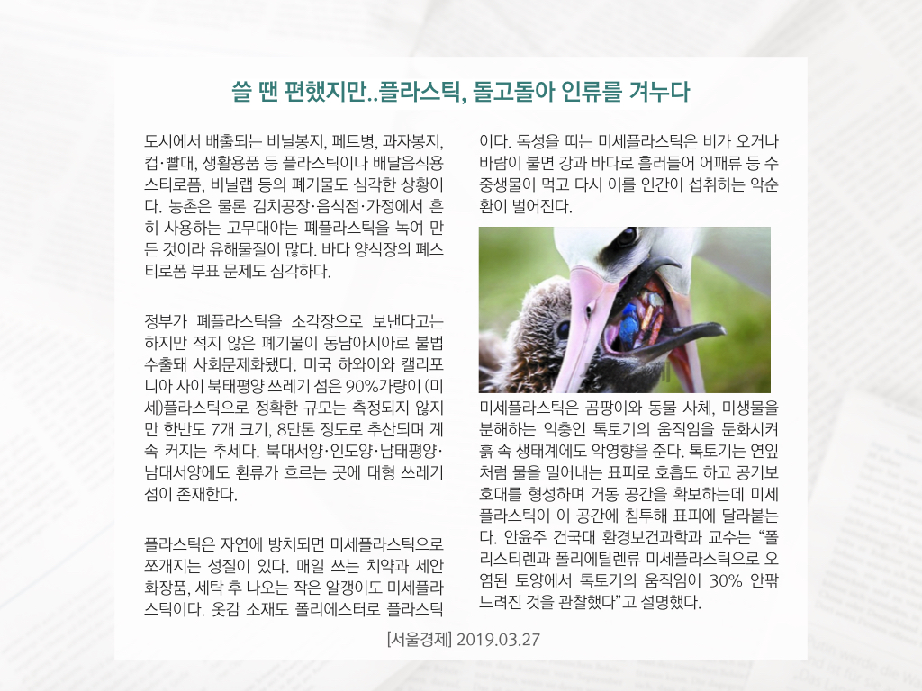 오랜 시간 다양한 형태의 플라스틱 사용으로 편리함에 익숙해진 우리는
