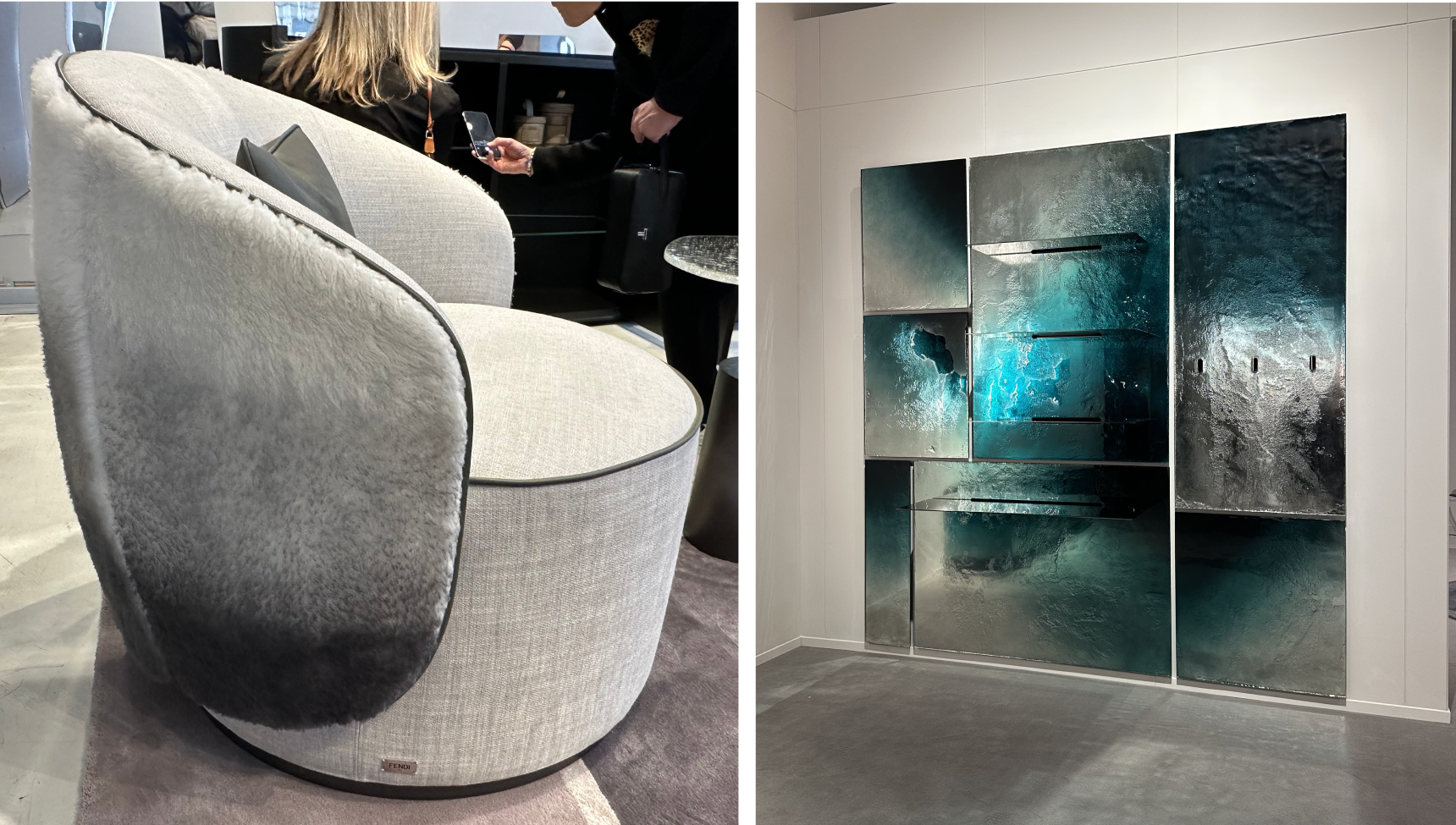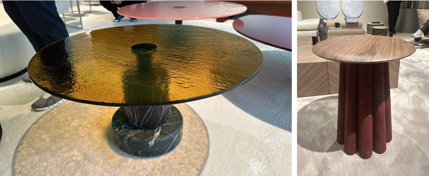 이번 밀라노 디자인 위크에서 흥미로웠던 또 하나의 변화는 소재를 다루는 방식이었다. ‘Material Tension’, 즉 감각이 충돌하는 6:4의 조화는 그 이름처럼 소재 간의 미세한 긴장 관계를 중심에 두었다. 그동안 익숙하게 보아왔던 유리와 스테인리스, 대리석과 우드처럼 명확한 중심과 보조가 구분되는 8:2의 구성은 이번 시즌 들어 균형의 방식을 달리했다. 텍스처가 살아있는 유리와 과감한 패턴의 대리석, 뚜렷한 결을 지닌 우드와 컬러감이 강한 스웨이드, 대비되는 패브릭 등 서로 다른 감각들이 더 높은 비율로 맞물리며 대등한 위치를 차지하게 된 것이다.