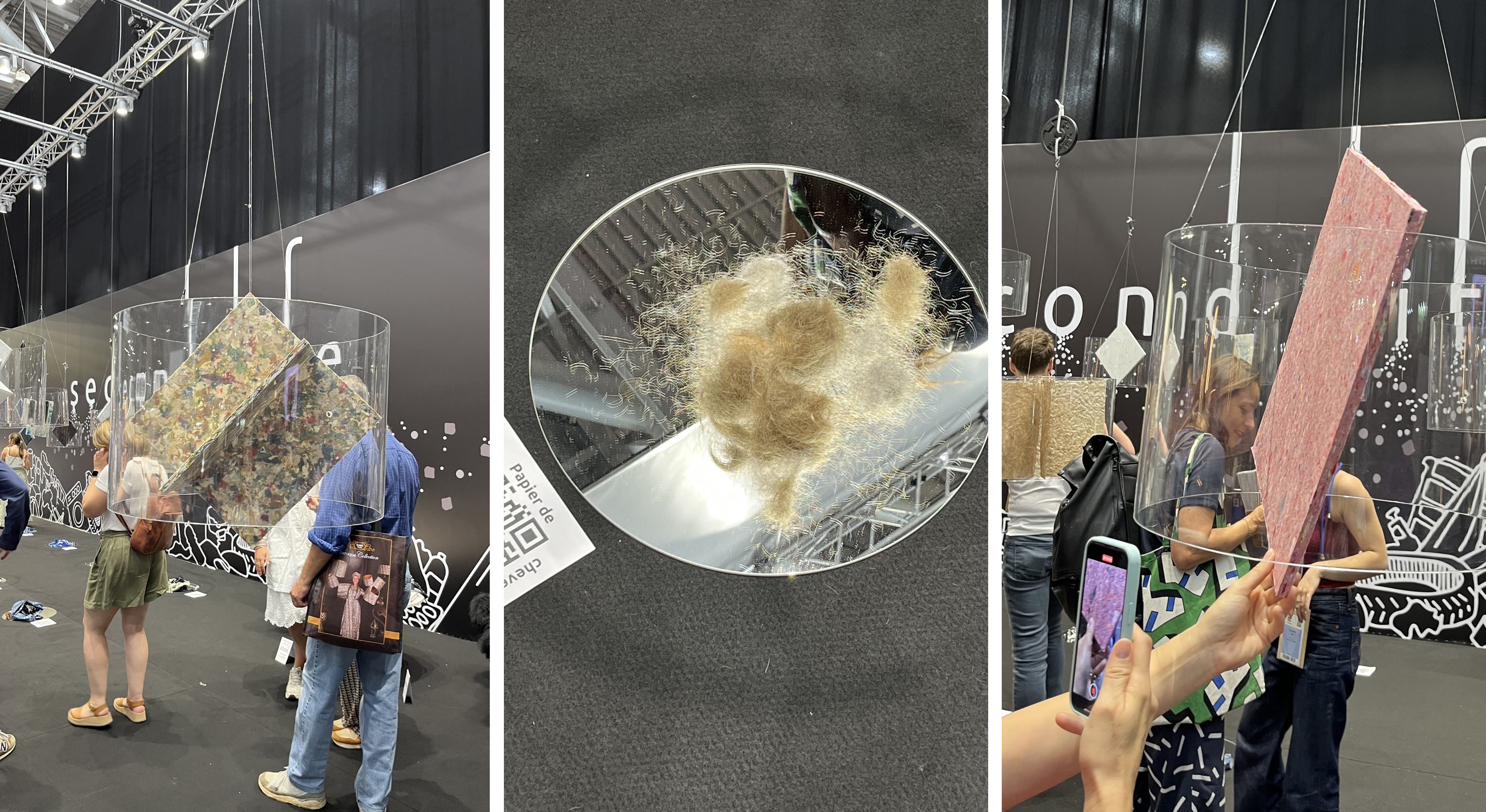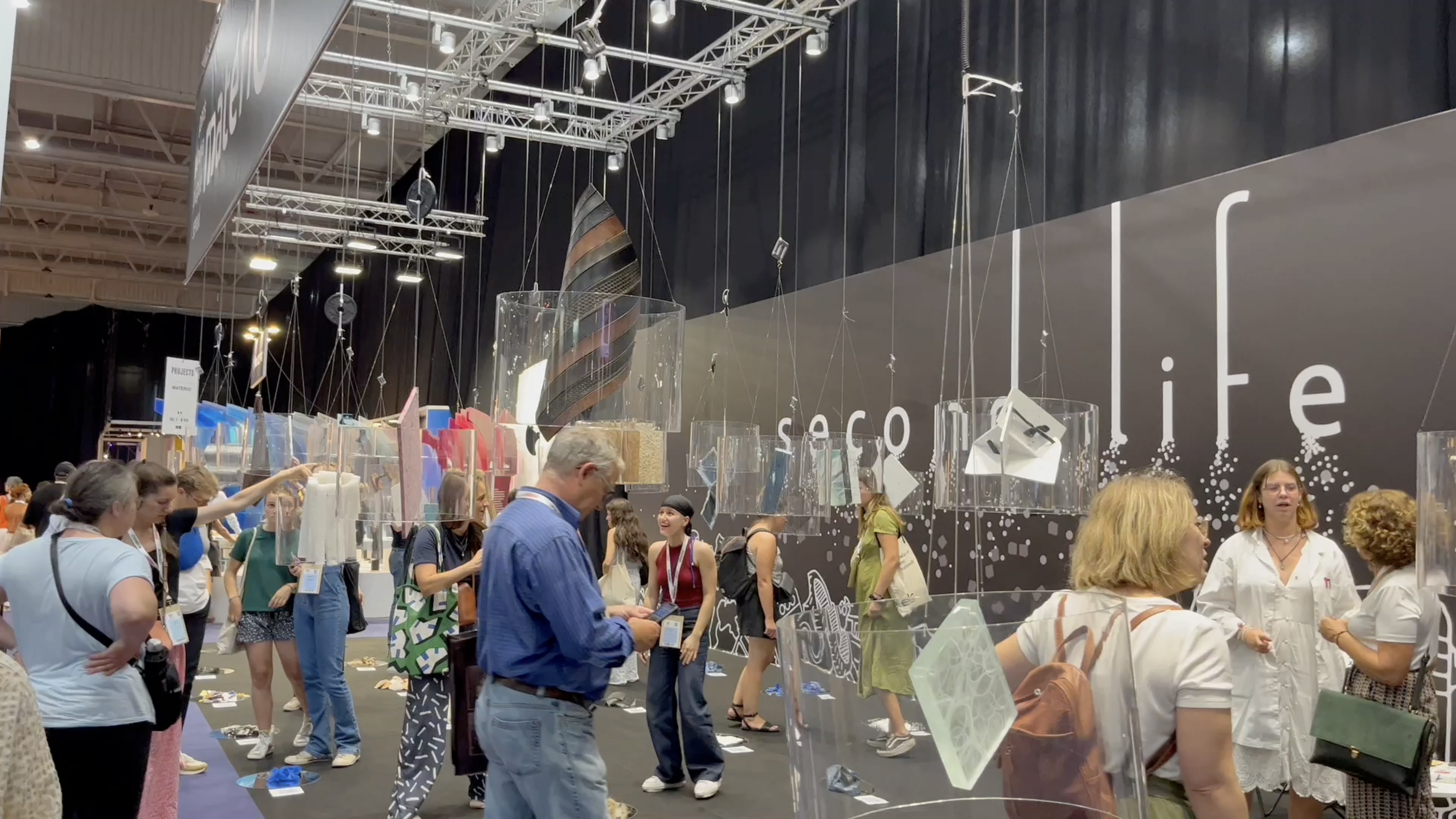 혁신적이고 독특한 소재를 소개하는 글로벌 소재 라이브러리인 머테리오는 전 세계의 디자이너들에게 영감을 주는 다양한 재활용 소재를 제안했다. 각각의 재료는 커다란 PMMA 실린더에 담겨 공중부양하는데, 바닥의 원료와 매칭되도록 보여주며 소재만으로 공간을 가득 채웠다. 예를들면 청바지로 만든 목재, 요거트컵으로 만든 패널들, 사용된 가죽 벨트로 만든 바닥재, 새우 껍질 폼보드, 고무 타이어 타일, 인형이나 팝콘으로 만든 단열재 블록, 담배꽁초로 만든 단단한 패널등이 있었는데, 새로운 활력과 새로운 용도를 위해 두번째 생을 시작할 재생 재료들을 소개하며 전 세계의 디자이너들에게 영감을 주고, 이들의 혁신을 강조했다.