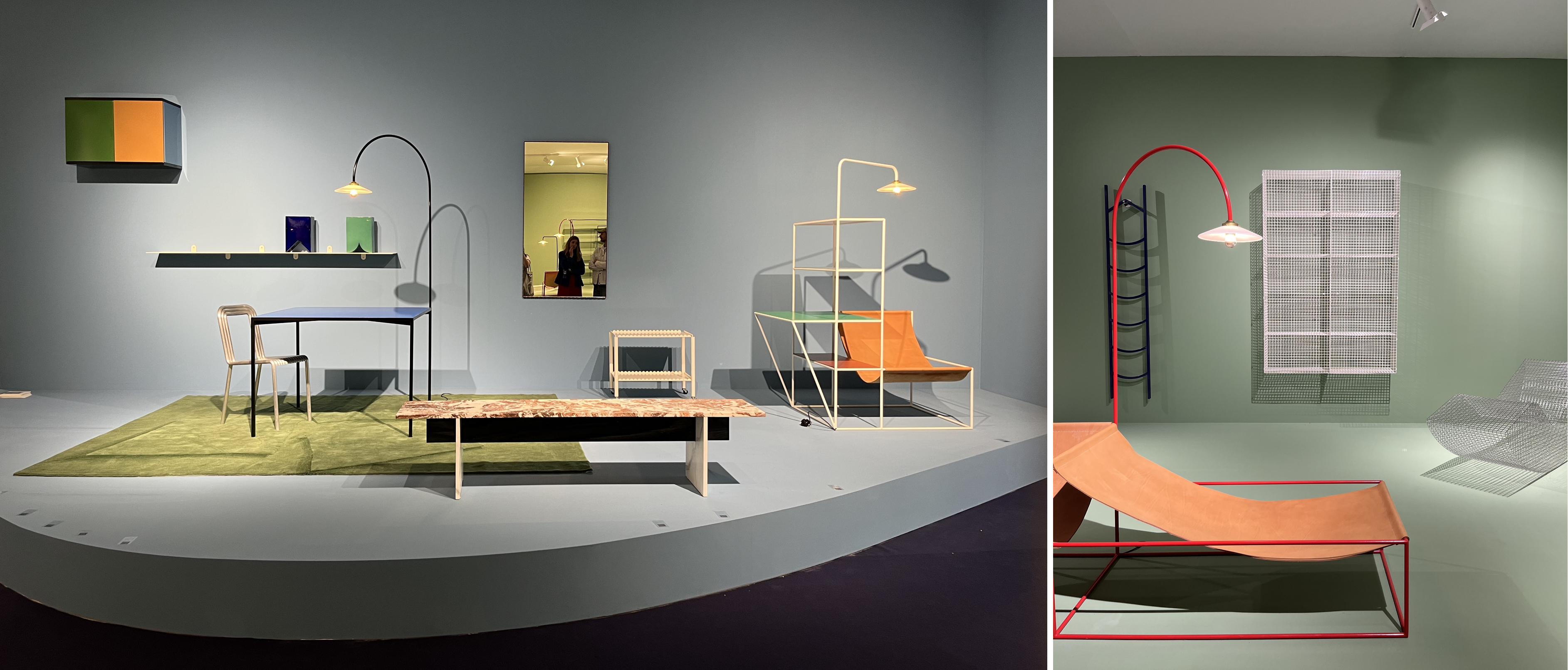 “색상은 강력한 감정과 기억을 불러일으킬 수 있다, 우리는 균형과 불균형을 찾아 다양한 색상의 제품군을 제작했다.” 고 인터뷰한 메종오브제의 올해의 디자이너, 뮐러반세르반은 시그니처인 Future Primitive 컬렉션을 통해 구조적 절제미, 기능성 그리고 컬러감이 돋보이는 화려하면서도 절제된 미학을 선보였다. 제어된 미니멀한 구조체 속 알루미늄, 에나멜, 스웨이드레더, 마블 등의 컬러와 소재를 대비하며 강조한 이들의 가구에 걸맞게 전시공간도 직선적 가구에는 곡선 구조를, 벽에는 연한 컬러의 보색을 사용해 비슷한 톤앤매너 속 아이덴티티를 강조했다 .