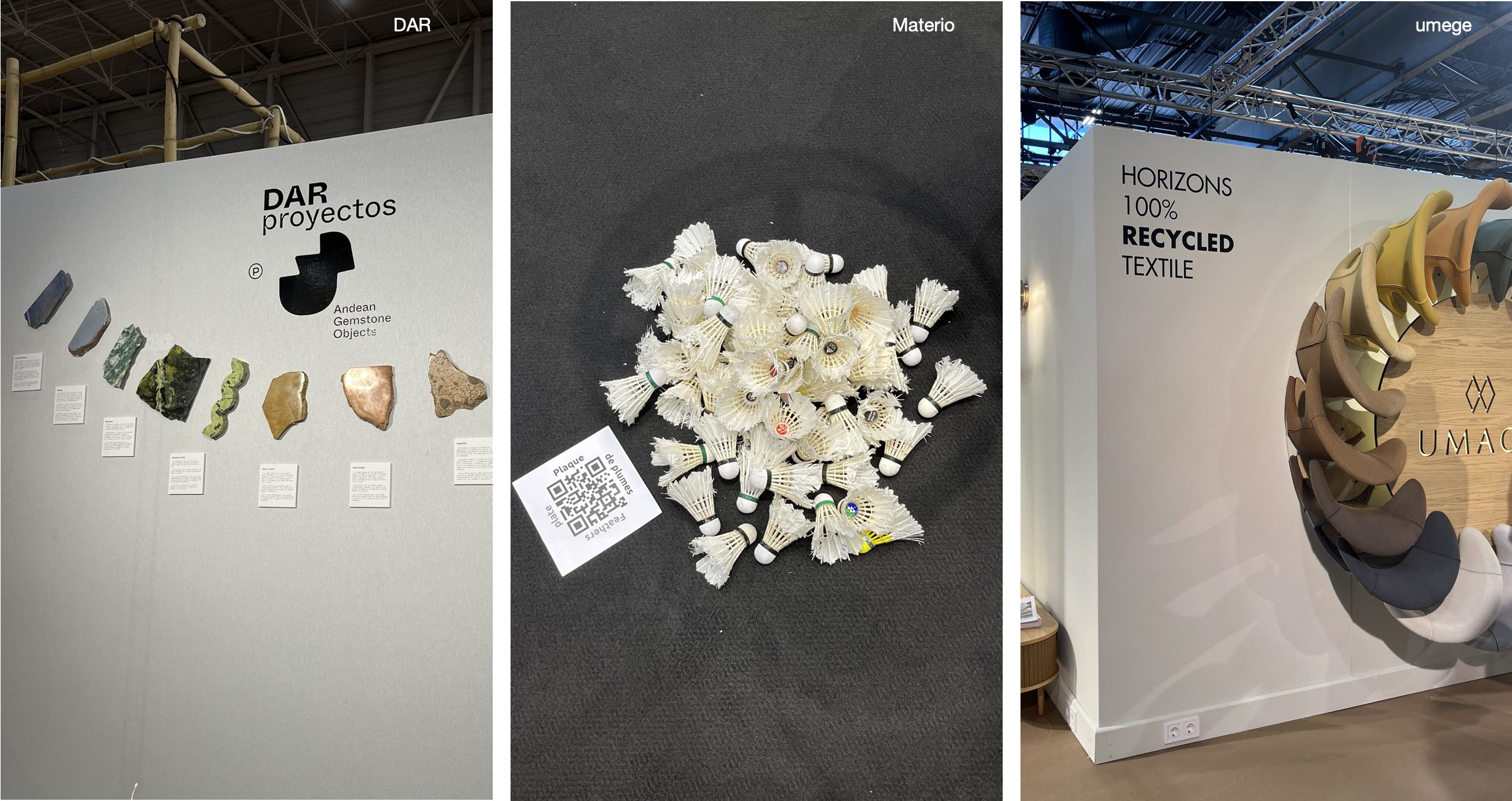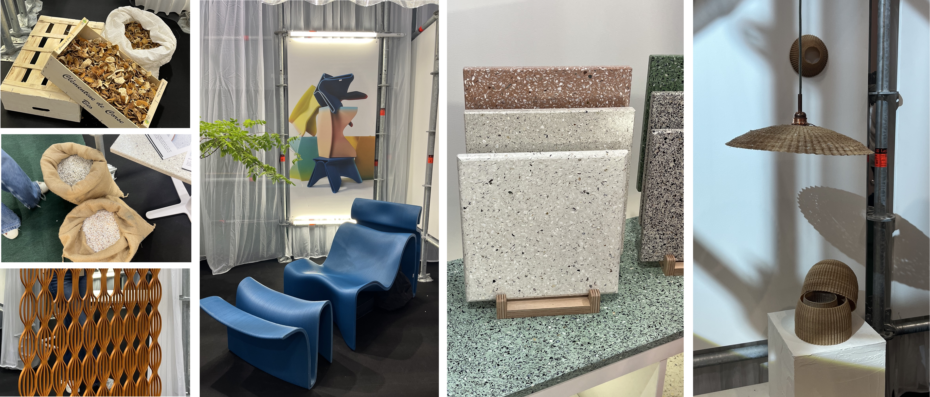 메종오브제라는 전시의 특성 상, 타 디자인 페어들에 비해 공예적인 특성들이 강조된 신규브랜드나 디자이너들의 피스들을 주목하는 편이다. 그래서 미래의 디자이너를 조망하는 future on stage 가 매년 눈길을 끄는데, 올해 선정된 세 팀의 디자이너는 모두 재활용 소재를 활용한 디자인을 선보였다. 홍합 껍질을 재활용한 타일을 선보인 Ostera, 3d 프린터를 이용해 가구를 뽑아내는 Komut Studio, 오렌지 껍질을 재활용한 repulp 까지 future on stage의 세 브랜드는 각각의 완제품과 원료를 함께 배치해 소재감을 더욱 강조했다.
