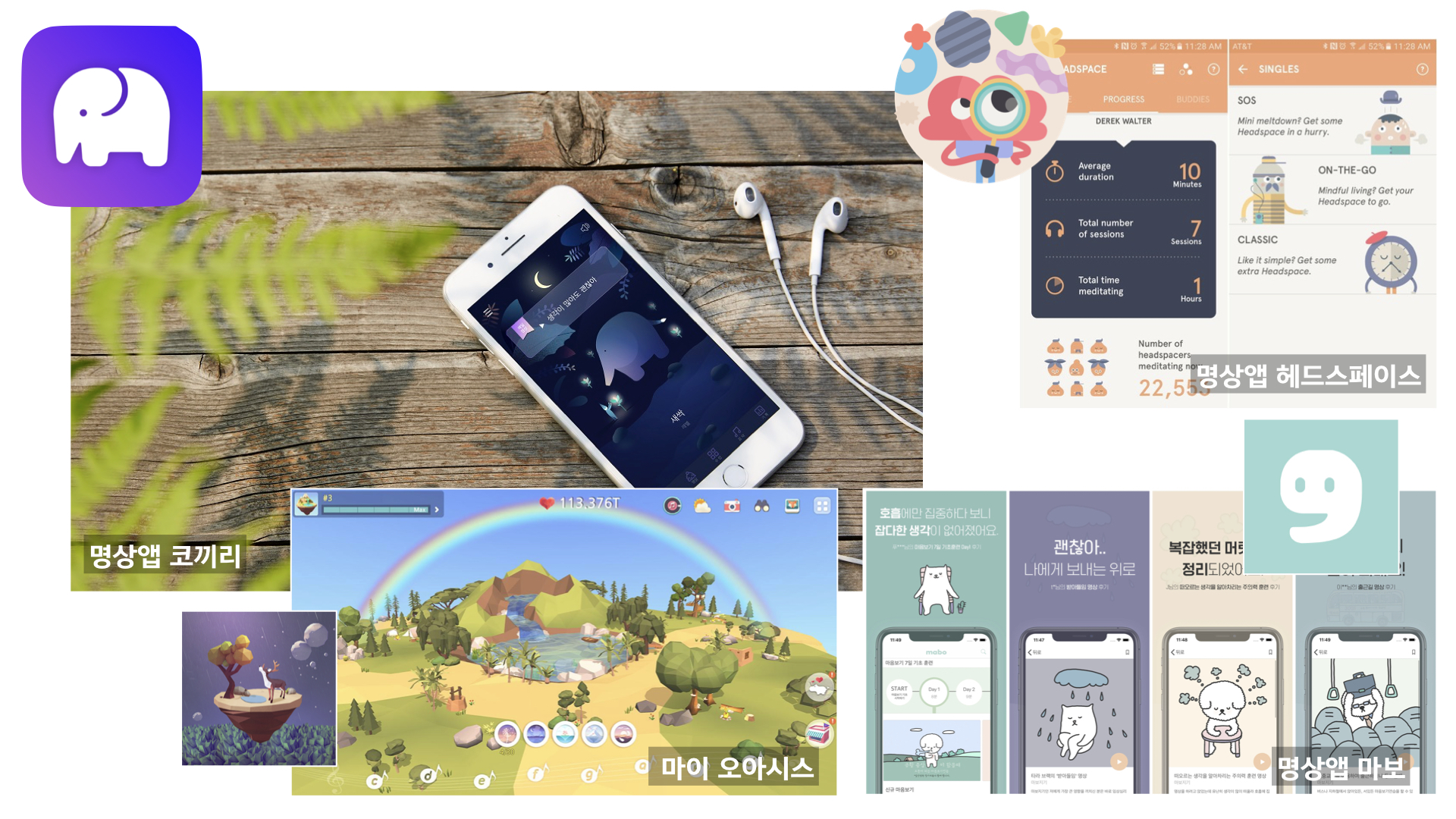지난해 출시된 앱 '코끼리'는 혜민 스님을 비롯한 전문가들의 힐링 명상 음원과 심리 수업을 제공하여