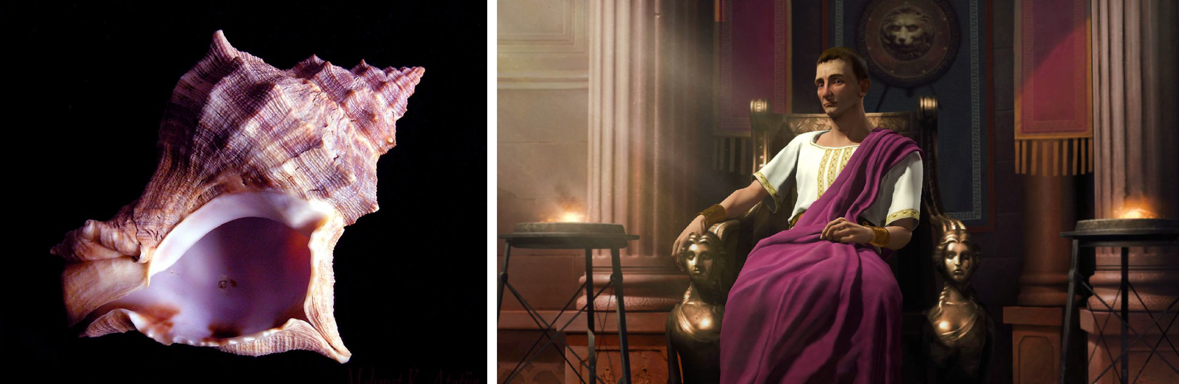๋์๊ณ ๊ธ์ ๋ง๋ก ํ๊ณ ๋ณด๋ผ์์ ๊ณ ๊ทํจ๊ณผ ๊ถ์์ ์์ง์ด์๋ค. ์์ฐ์์๋ถํฐ ๋ณด๋ผ์์ ์ผ๋ฃ๋ฅผ ์ถ์ถํ๋ ๊ณผ์ ์ ๋งค์ฐ ์ด๋ ต๊ณ ๊น๋ค๋ก์ ์ผ๋ฉฐ ๊ฒฐ๊ณผ์ ์ผ๋ก ๊ต์ฅํ ๋น์๊ธฐ ๋๋ฌธ์ ๋ณด๋ผ์์ผ๋ก ๋ฌผ๋ค์ธ ์ท์ ์๋ฌด๋ ์ ์ ์ ์๋ ๊ฒ์ด ์๋์๋ค. ๋ฎค๋ ์ค Trunculariopsis (Murex) trunculus ํน์ ํผํจ๋ผ Purpura ๋ผ๊ณ ๋ถ๋ฆฌ๋ ๋ฐ๋ค ๊ณ ๋ฅ์ ์ผ์ข ์์ ์ถ์ถํ ์๋ฃ๋ง์ด ๋ณด๋ผ์์ ์ ์ผํ ์ผ๋ฃ์์ผ๋ฉฐ ์ด๋ ๊ฒ ์์ฐ์์ ์ถ์ถํ ๋ณด๋ผ์ ์ผ๋ฃ๋ฅผ ํ์ด๋ฆฌ์ ํผํ Tyrian Purple ์ด๋ผ๊ณ ๋ถ๋ ๋ค. ํ์ด๋ฆฌ์ ํผํ์ ์๋ฃ๊ฐ ๋๋ ๋ฐ๋ค ๊ณ ๋ฅ์ด ์ฃผ๋ก ์์ํ๋ ์ง์คํด๋ฅผ ์ค์ฌ์ผ๋ก ์ ํํ์์ผ๋ 1ใก์ ์ง๋ฌผ์ ์ผ์ํ๊ธฐ ์ํด ๋๋ต 2๋ง ๋ง๋ฆฌ์ ๊ณ ๋ฅ์ด ํ์ํ ์ ๋๋ก ๊ณต์ ์ด ๊น๋ค๋ก์ ๊ธฐ ๋๋ฌธ์ ์๋นํ ๊ณ ๊ฐ์๋ค. ์์ฐ์ค๋ฝ๊ฒ ๊ท์กฑ๊ณผ ๊ณ ์๊ณต์ง์ ๋ฑ ํน์ ๊ณ์ธต๋ง์ด ๋๋ฆด ์ ์์์ผ๋ฉฐ ์นด์ด์ฌ๋ฅด Caesar, ํฌ์ธ๋ฅดํฌ์ธ์ค Xerxes ๋ฑ ํฉ์ ์ ๊ตํฉ๊ณผ ๊ฐ์ ๊ณ ์ ์ฑ์ง์๋ค์ ์์ง์ด์๋ค.