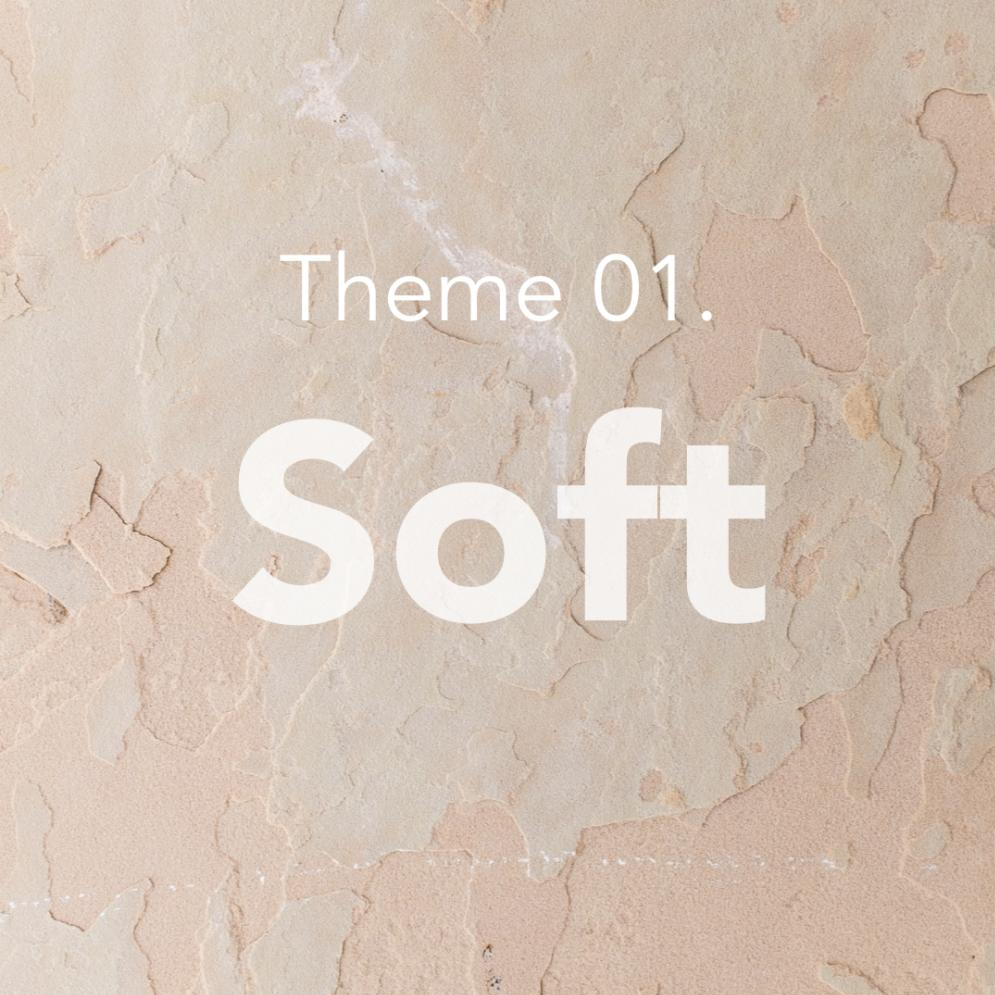 Soft 테마는 가장 일반적으로 아파트 도장에 사용된 색채디자인 테마이다. 2000년대 초반, 건설사들이 앞다투어 브랜드 아이덴티티를 담은 아파트 색채계획을 선보이면서부터 이 soft 테마는 다채롭게 사용되어왔다. 주로 베이지, 아이보리를 주조색으로 소량의 중채도-중명도 포인트컬러를 사용하여 디자인한다.