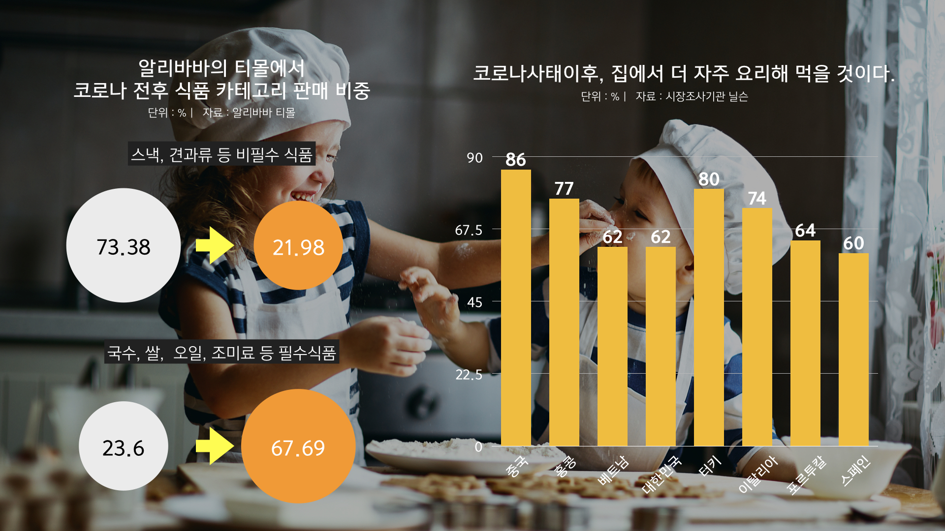 SNS와 유튜브 등의 온라인 매체를 통해 집에서 요리할 수 있는 쉽고 다양한 요리법이 공유되고